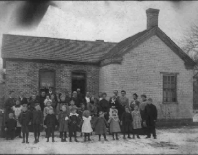 The Peterson home (view from the south). This photo was taken with the Peterson family about the turn of the twentieth century.